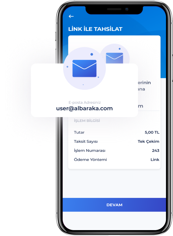Alneo üye işyerleri müşterilerine e-posta üzerinden ödeme linki göndererek ödemelerini tahsil edebiliyor. Böylece müşteriler kendi kart bilgilerini doldurarak, zaman ve mekândan bağımsız, güvenli ödeme gerçekleştirebiliyor.